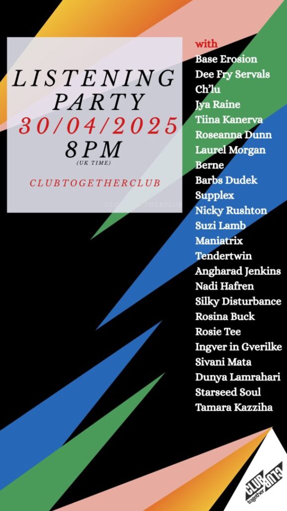 For Club Together Club, this is more than just a release—it’s an ongoing mission to support and amplify marginalised voices. They have spent the last two years building a platform dedicated to the visibility of underrepresented genders and identities in the music industry. Through monthly radio shows, collaborative projects, and now, this second compilation, they continue to create spaces where these voices can be heard.