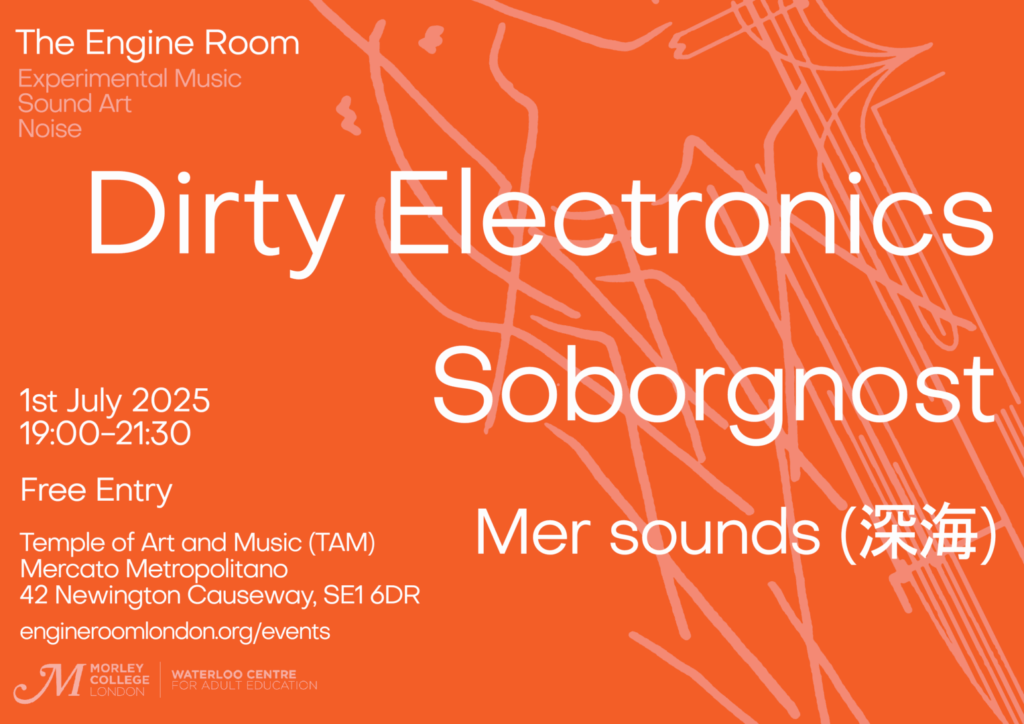 The Engine Room presents: Dirty Electronics, Soborgnost, and Mer sounds (深海) for an evening of sonic experimentation that pushes at the boundaries of sound art and music.